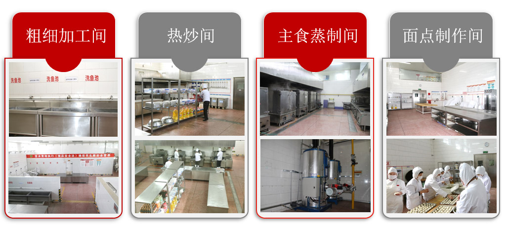 tk体育拥有6000多平方米的生产配送基地,采用中央厨房生产化作业,设有机械化粗细加工车间、配餐分装生产线、餐具洗消线、冷冻、保鲜库房、以及专业化较强的食品加工布局和生产工艺流程。